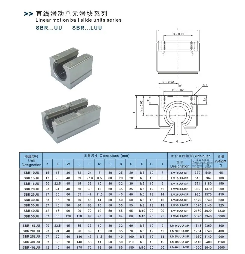 SBR25UU, SBR10UU, SBR20UU, SBR12UU, SBR16UU |