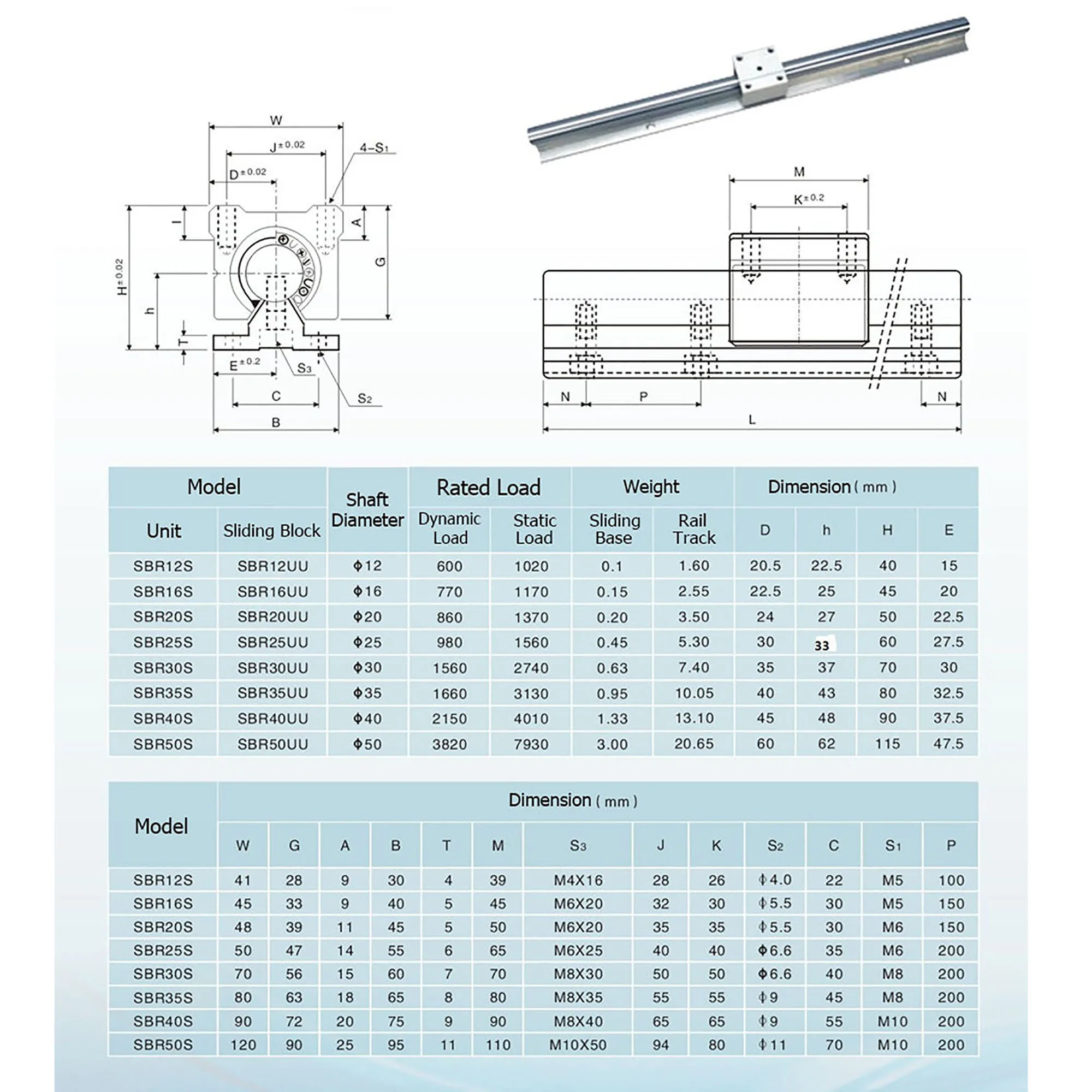 SBR10/12/16/20/25UUBösten von Blöcken, bei Fragen kontaktieren Sie uns bitte)