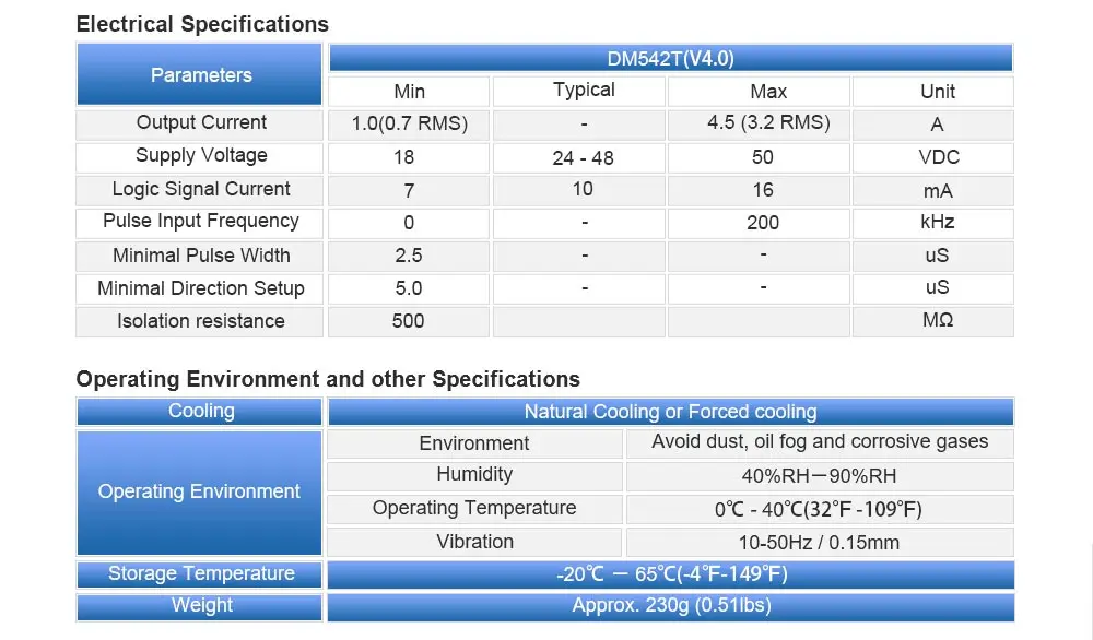 Microstep: 200-25600(Steps/rev.)